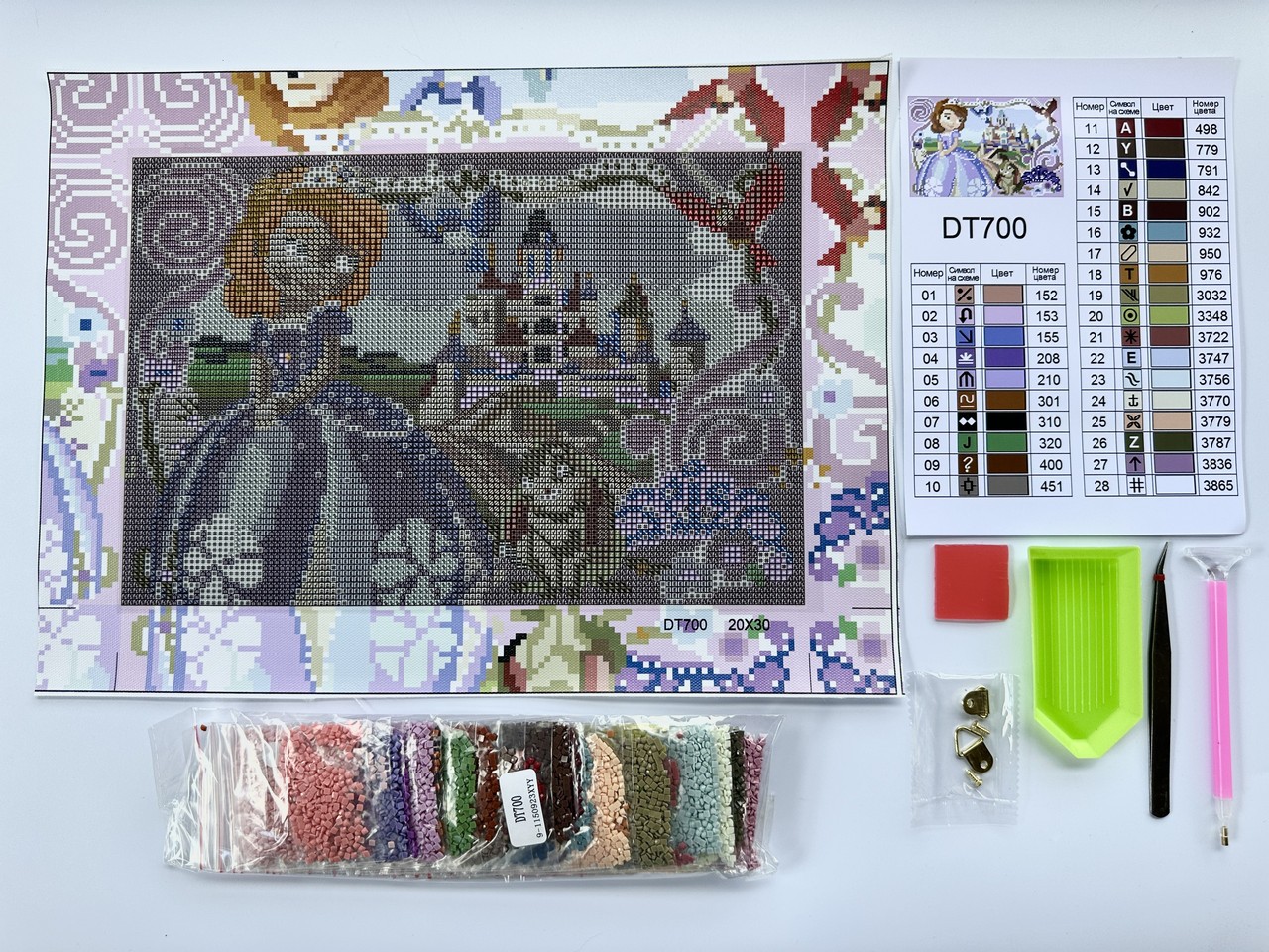 -Вийміть набір із коробки. Звільніть невеликий кусочок схеми від захисного паперу. Рекомендуємо відклеїти стільки, скільки ви зможете зробити за один раз.
