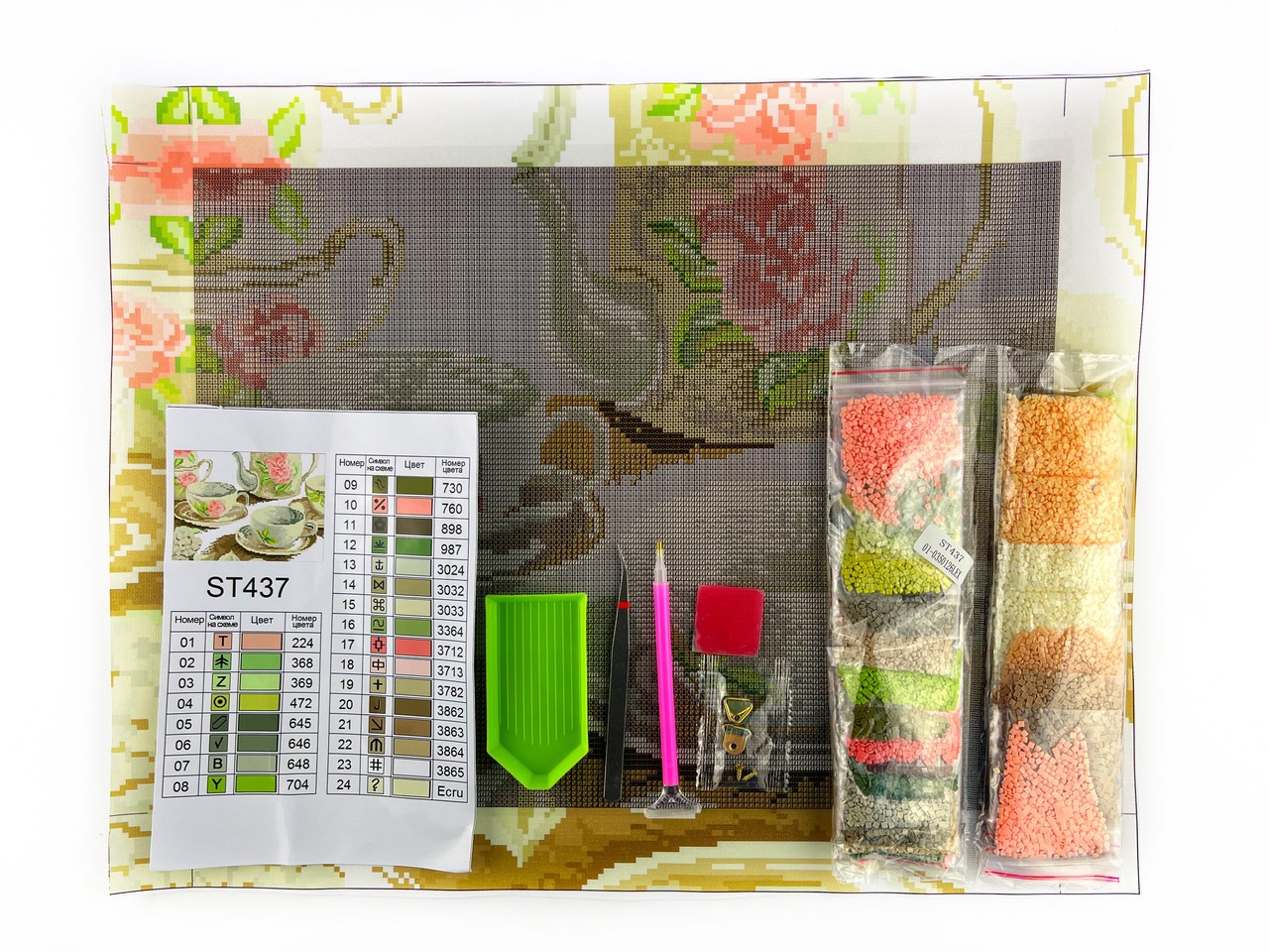 Набори виготовлені з екологічно чистих матеріалів. Всі алмазики одинакового розміру 2.5х2.5мм., їх кількість у наборі є достатньою, навіть ще й із запасом. Картини повністю закладаються алмазами. Квадратна форма алмазу дозволяє закласти всю поверхню полотна не залишаючи проміжків.