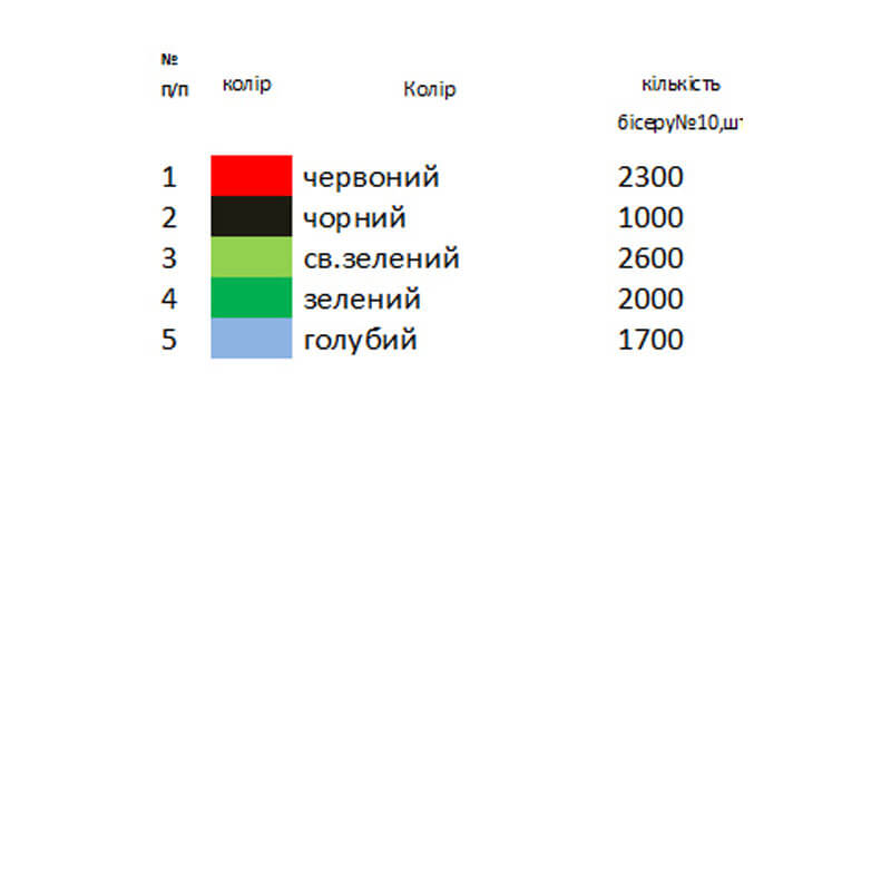 При бажанні комплектуємо чеським бісером з 15% запасом, а також ниткою для бісеру та голкою.