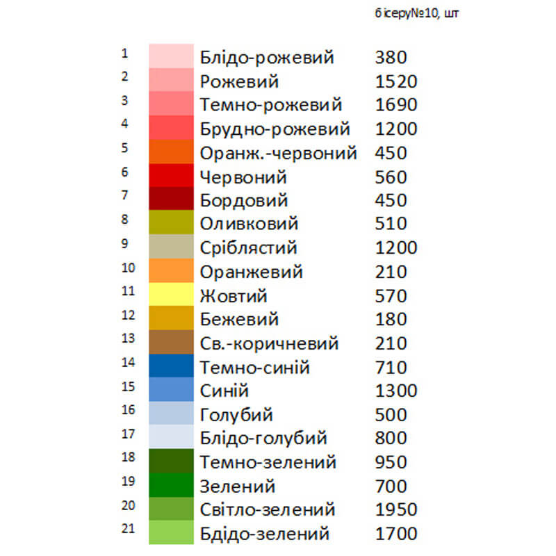 При бажанні комплектуємо чеським бісером з 15% запасом, а також ниткою для бісеру та голкою.