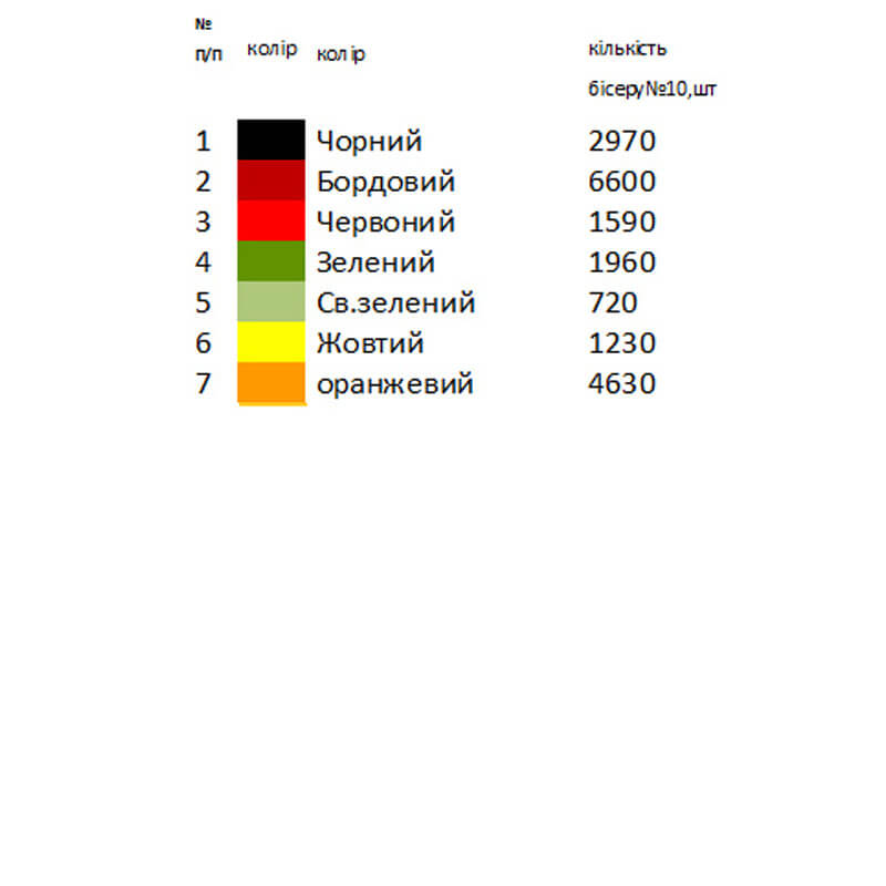 При бажанні комплектуємо чеським бісером з 15% запасом, а також ниткою для бісеру та голкою.