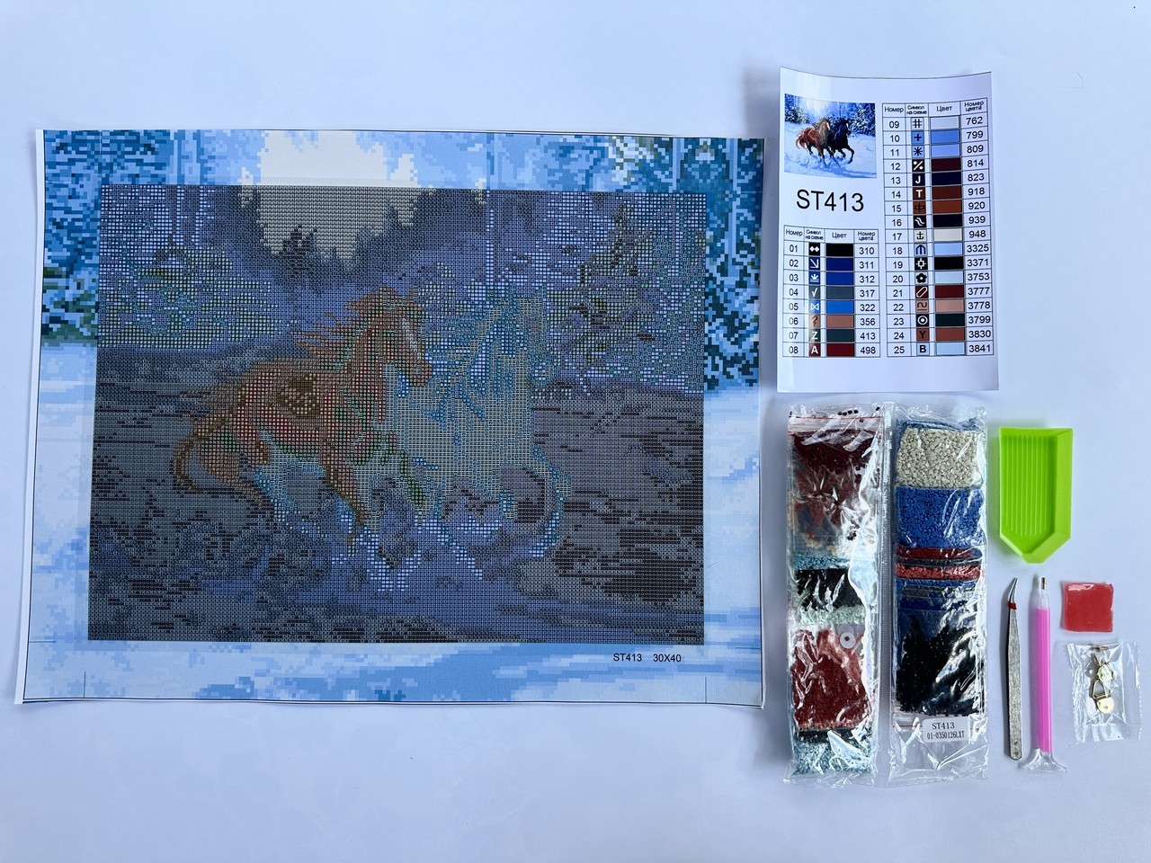 Набори виготовлені з екологічно чистих матеріалів. Всі алмазики одинакового розміру 2.5х2.5мм., їх кількість у наборі є достатньою, навіть ще й із запасом. Картини повністю закладаються алмазами. Квадратна форма алмазу дозволяє закласти всю поверхню полотна не залишаючи проміжків.