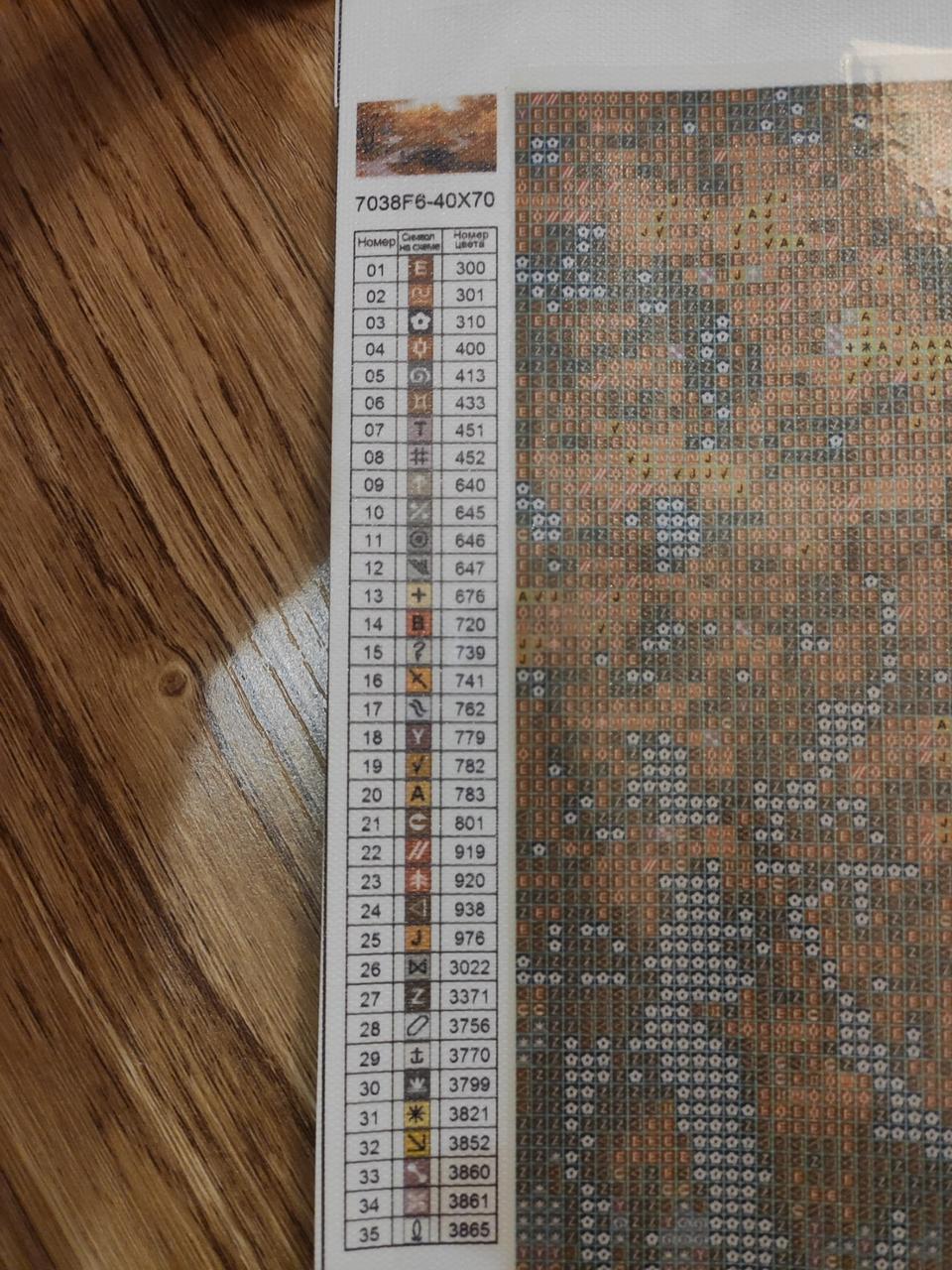 -Вийміть набір із коробки. Звільніть невеликий кусочок схеми від захисного паперу. Рекомендуємо відклеїти стільки, скільки ви зможете зробити за один раз.