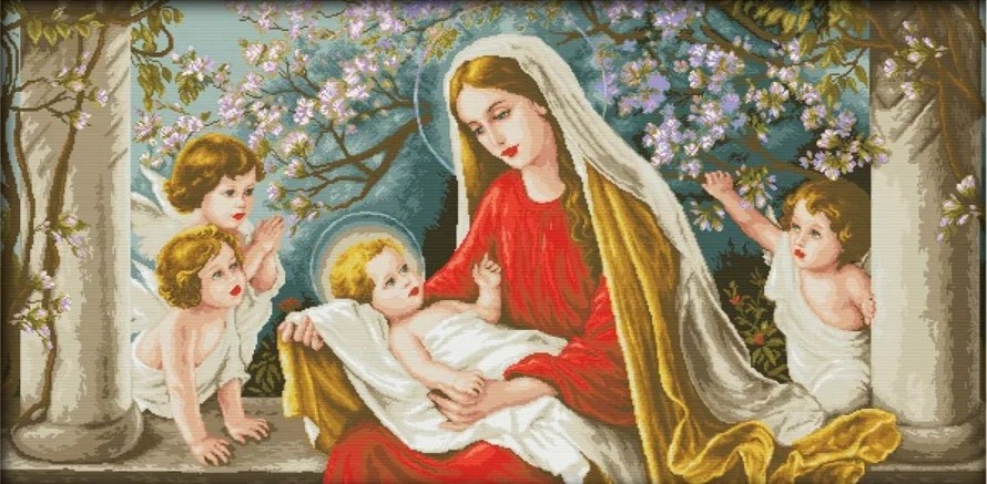 Набір алмазної мозаїки 40х70 Ікона Діва Марія з Ісусом в яблуневому саду SS803