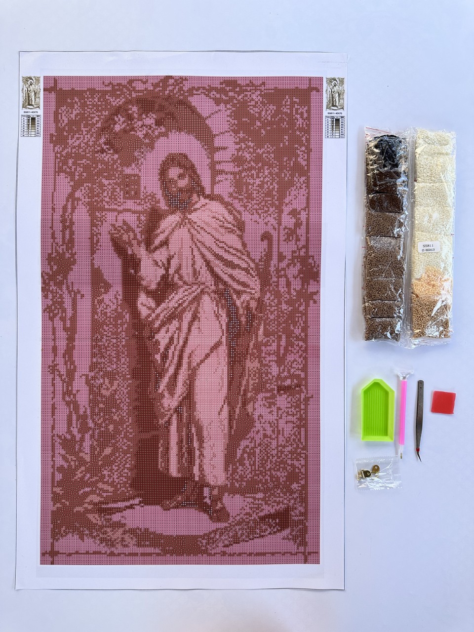 Набір алмазної мозаїки 40х70 Ікона Ісус стукає в двері сепія SS811