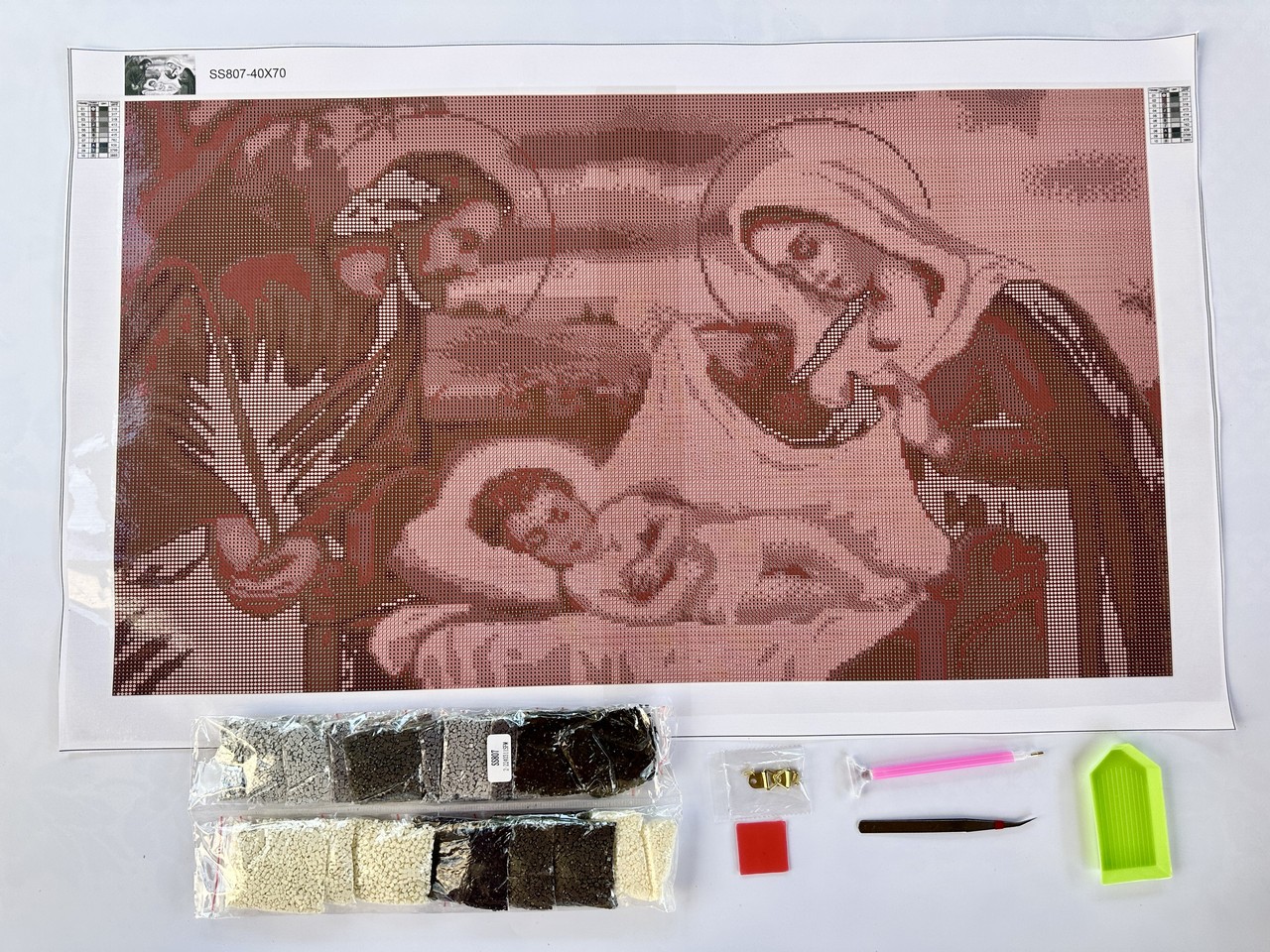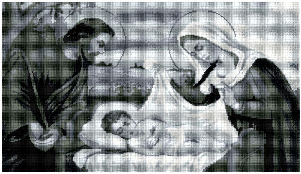 Набір алмазної мозаїки 40х70 Ікона Свята родина монохром сіра SS807