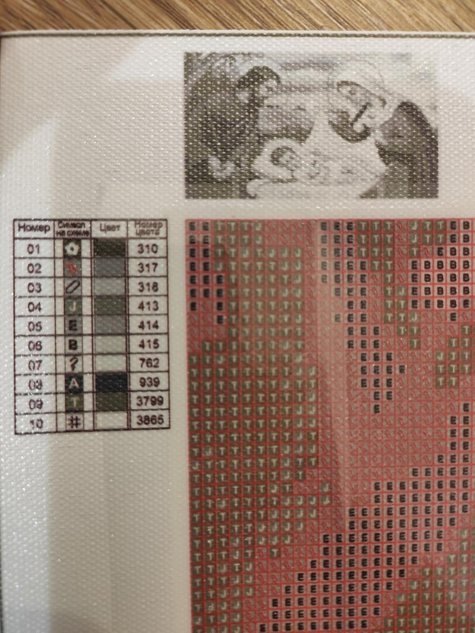 -Вийміть набір із коробки. Звільніть невеликий кусочок схеми від захисного паперу. Рекомендуємо відклеїти стільки, скільки ви зможете зробити за один раз.