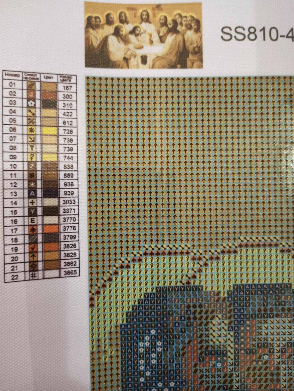 -Вийміть набір із коробки. Звільніть невеликий кусочок схеми від захисного паперу. Рекомендуємо відклеїти стільки, скільки ви зможете зробити за один раз.