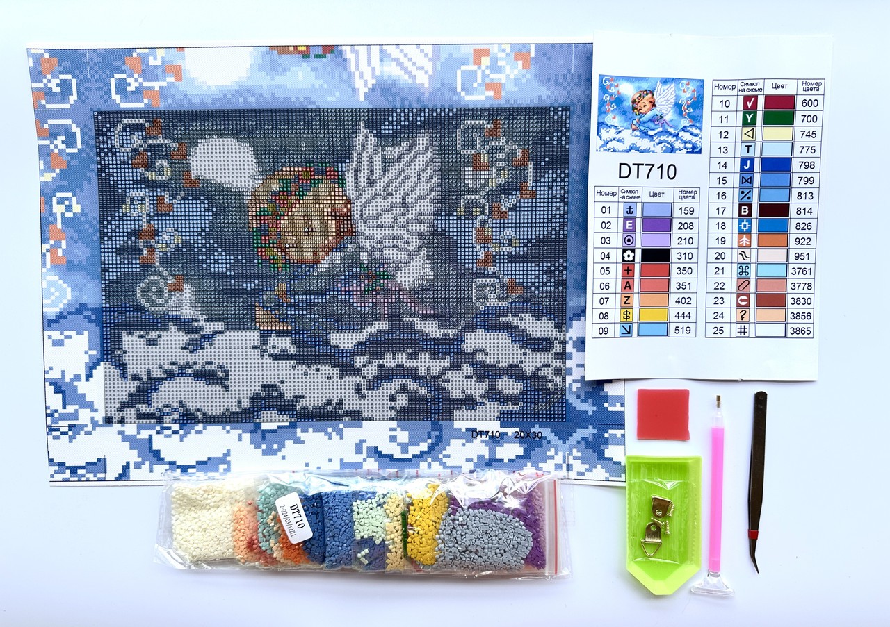 Набір алмазної вишивки 20х30 Ангел на хмаринці DT710