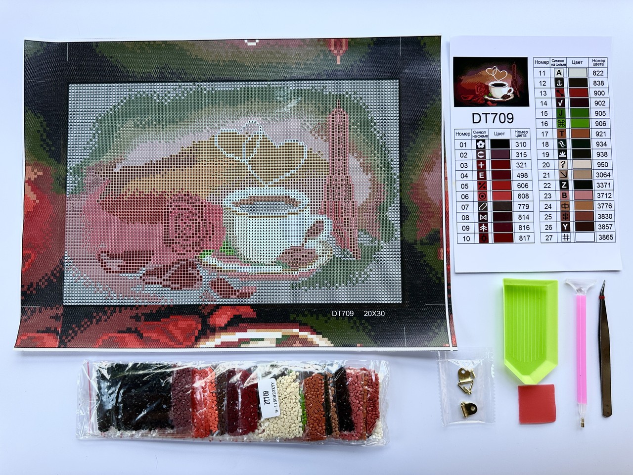 Набір алмазної вишивки 20х30 Кава з розою DT709