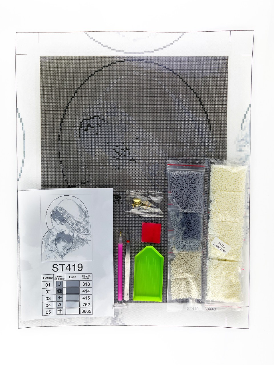 Набір алмазної вишивки 30х40 Ікона Діва Марія з Ісусом сіра ST419