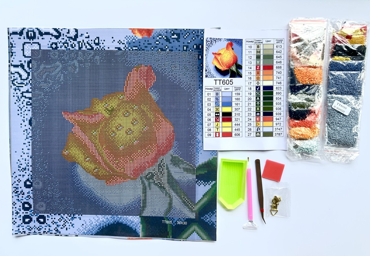 Набір для алмазної мозаїки 30х30см Троянда оранжева TT605