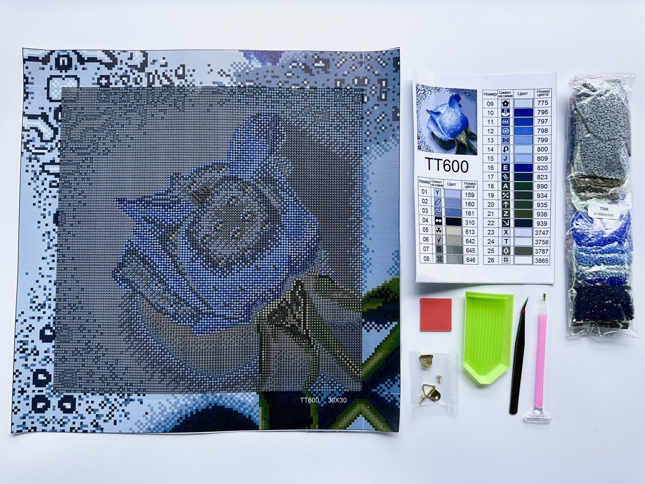 Набір для алмазної мозаїки 30х30см Троянда синя TT600