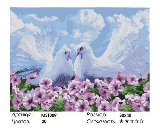 Набір для малювання за номерами 30х40 Пара голубів MST009 з підрамником