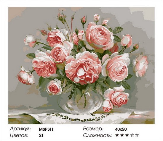 Набір для малювання за номерами Рожеві троянди 40×50 MSP311 з підрамником