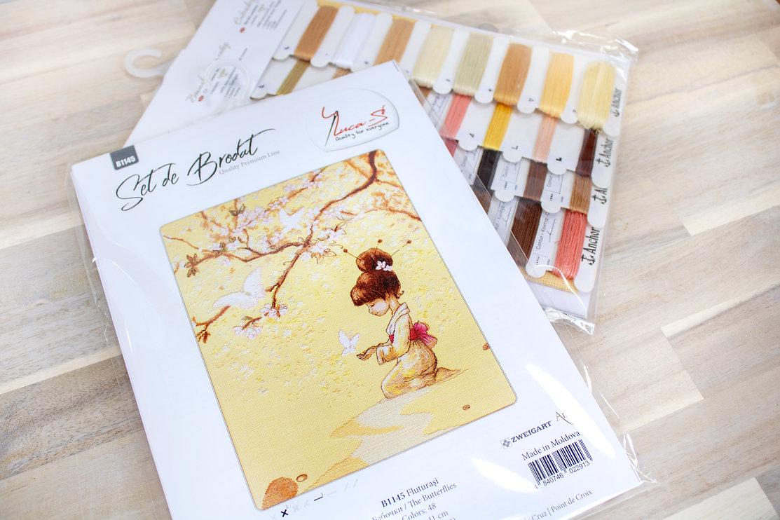 У набір входить: інструкція, кольорова символьна схема, тканина для вишивання, голка