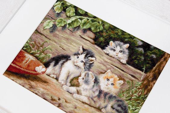 У набір входить: інструкція, кольорова символьна схема, тканина для вишивання, голка