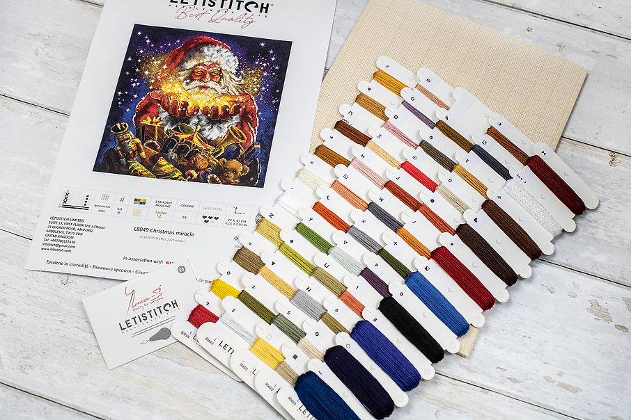 У набір входить: інструкція, кольорова символьна схема, тканина для вишивання, голка