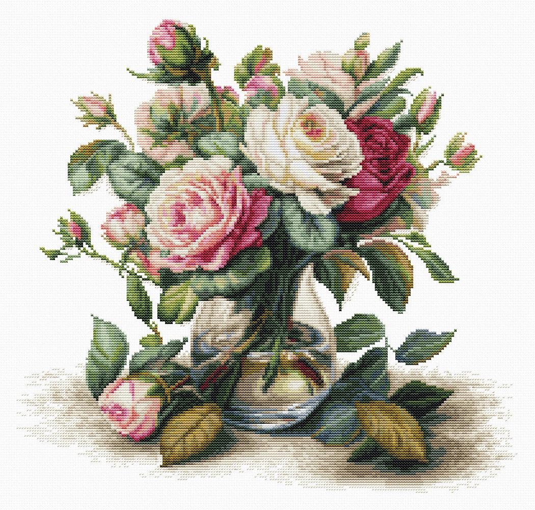 У набір входить: інструкція, кольорова символьна схема, тканина для вишивання, голка