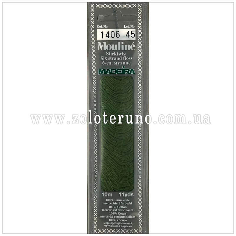 Нитки муліне 1406 (Mouline Madeira) призначенні для вишивання. Мають м’якість і характерний матовий блиск – це за рахунок єгипетської бавовни, яка має саме такі унікальні якості. Муліне є двічі мерсеризоване, їх забарвлення витримує температуру до 95 градусів.