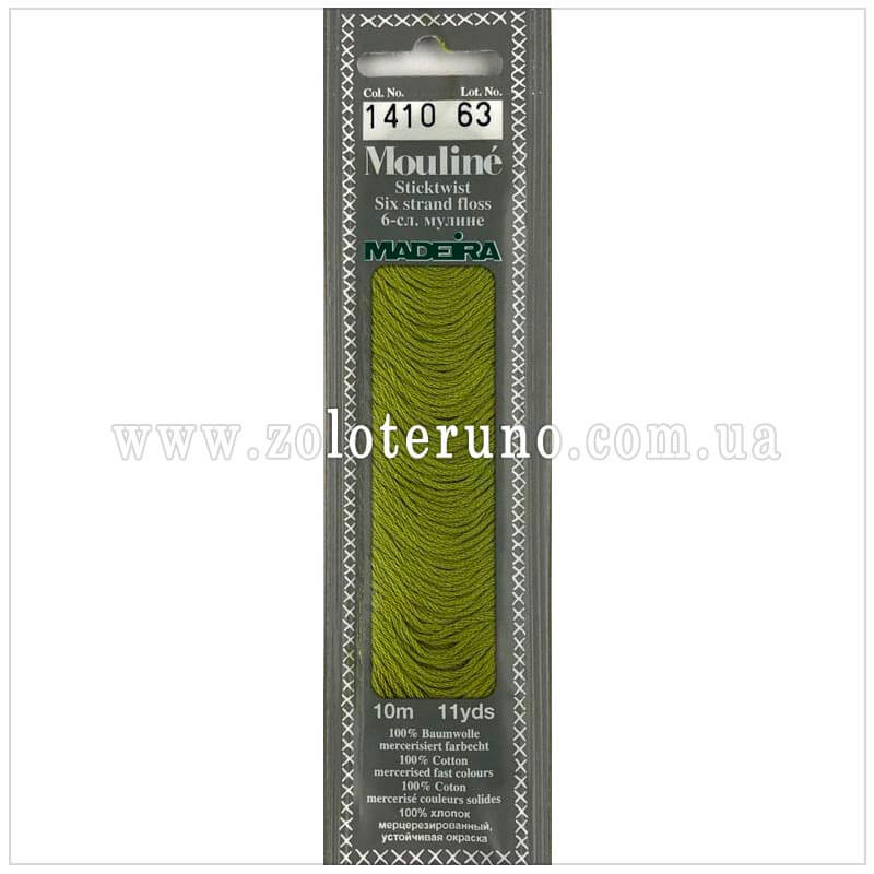 Нитки муліне 1410 (Mouline Madeira) призначенні для вишивання. Мають м’якість і характерний матовий блиск – це за рахунок єгипетської бавовни, яка має саме такі унікальні якості. Муліне є двічі мерсеризоване, їх забарвлення витримує температуру до 95 градусів.