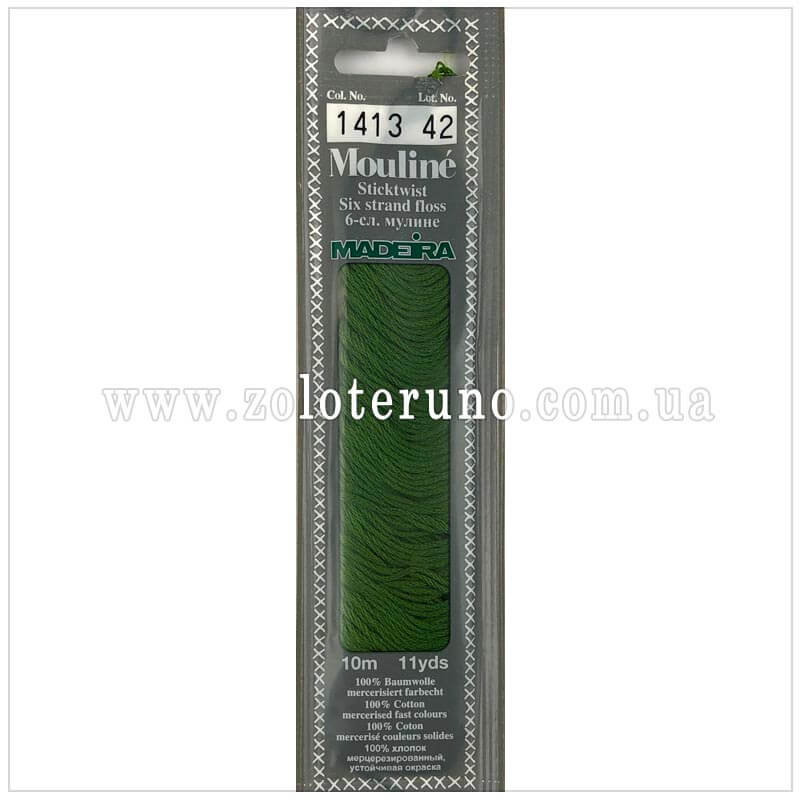 Нитки муліне 1413 (Mouline Madeira) призначенні для вишивання. Мають м’якість і характерний матовий блиск – це за рахунок єгипетської бавовни, яка має саме такі унікальні якості. Муліне є двічі мерсеризоване, їх забарвлення витримує температуру до 95 градусів.