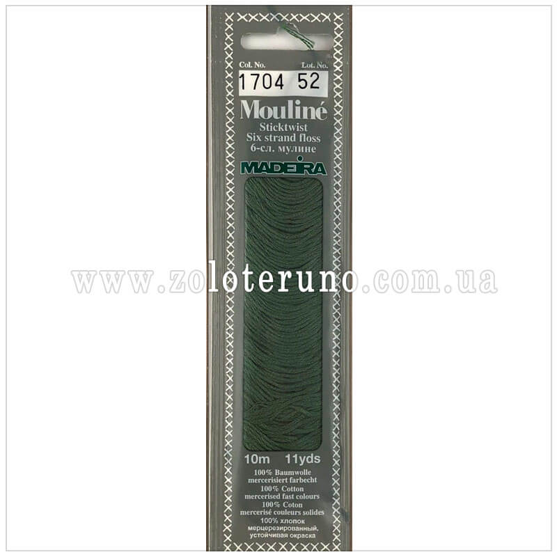 Муліне для вишивання 1704 Mouline Madeira. Має м’якість і характерний матовий блиск – це за рахунок єгипетської бавовни, яка має саме такі унікальні якості. Муліне є двічі мерсеризоване, їх забарвлення витримує температуру до 95 градусів.