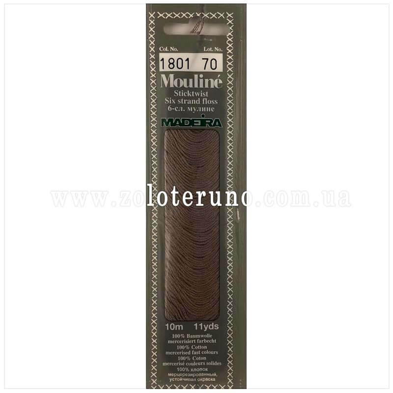Муліне для вишивання 1801 Mouline Madeira. Має м’якість і характерний матовий блиск – це за рахунок єгипетської бавовни, яка має саме такі унікальні якості. Муліне є двічі мерсеризоване, їх забарвлення витримує температуру до 95 градусів.