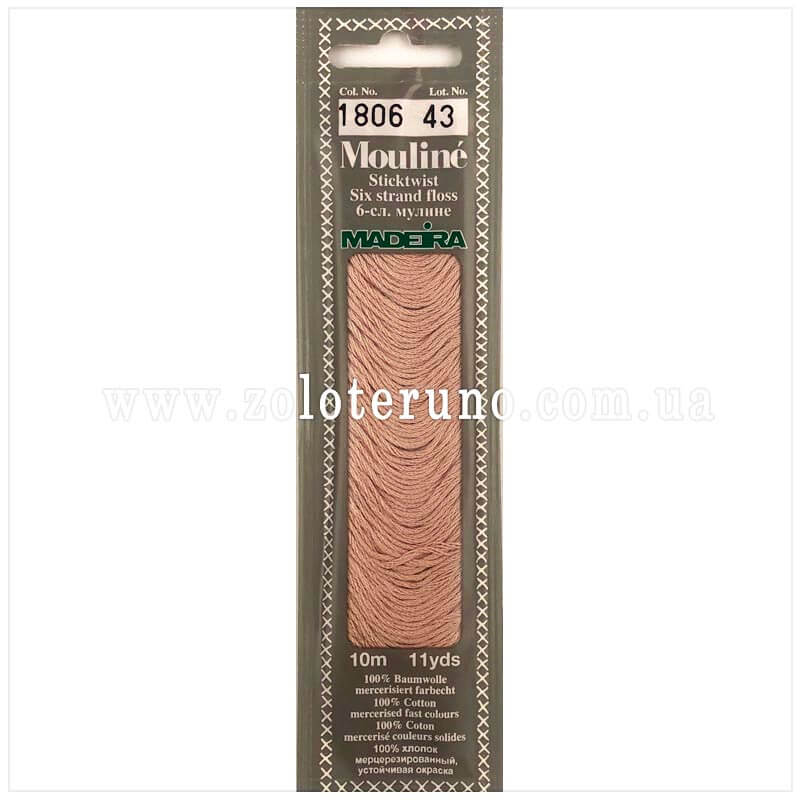 Муліне для вишивання 1806 Mouline Madeira. Має м’якість і характерний матовий блиск – це за рахунок єгипетської бавовни, яка має саме такі унікальні якості. Муліне є двічі мерсеризоване, їх забарвлення витримує температуру до 95 градусів.