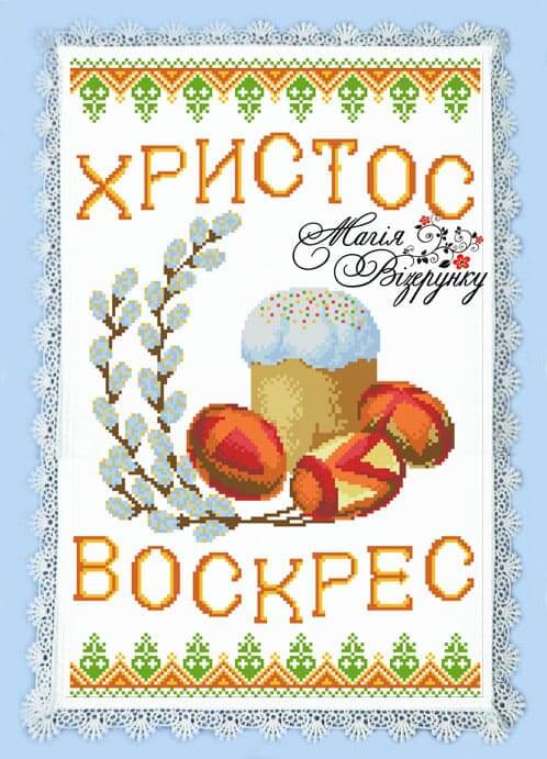 Набір містить заготовку на пасхальний рушник РП-015 для вишивки бісером або нитками з нанесеним малюнком-схемою та інструкцію до вишивання від виробника “Магія Візерунку”. В інструкції до вишивання вказані кольори та кількість бісеру фірми Preciosa.