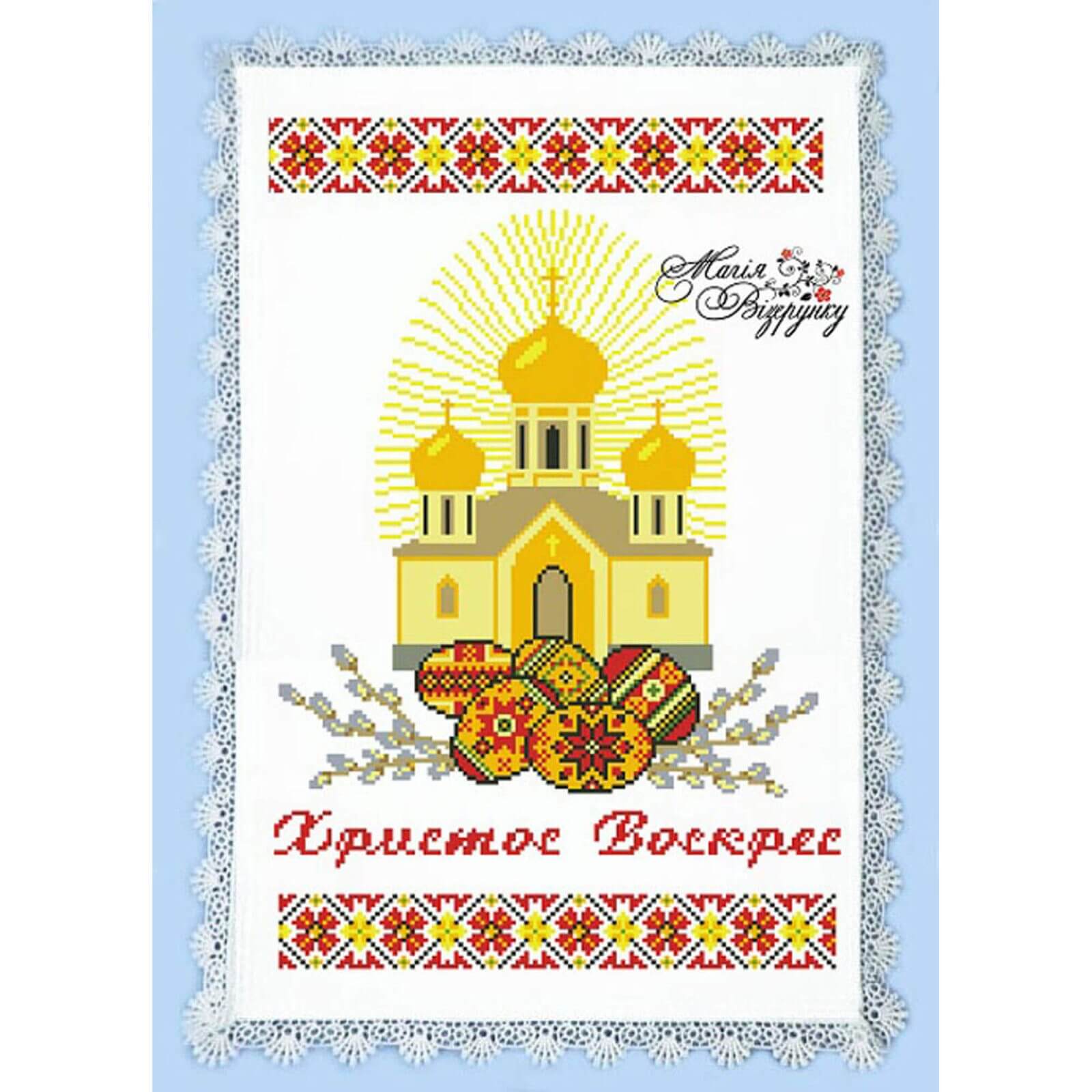 Набір містить заготовку на пасхальний рушник РП-025 для вишивки бісером або нитками з нанесеним малюнком-схемою та інструкцію до вишивання від виробника “Магія Візерунку”. В інструкції до вишивання вказані кольори та кількість бісеру фірми Preciosa.