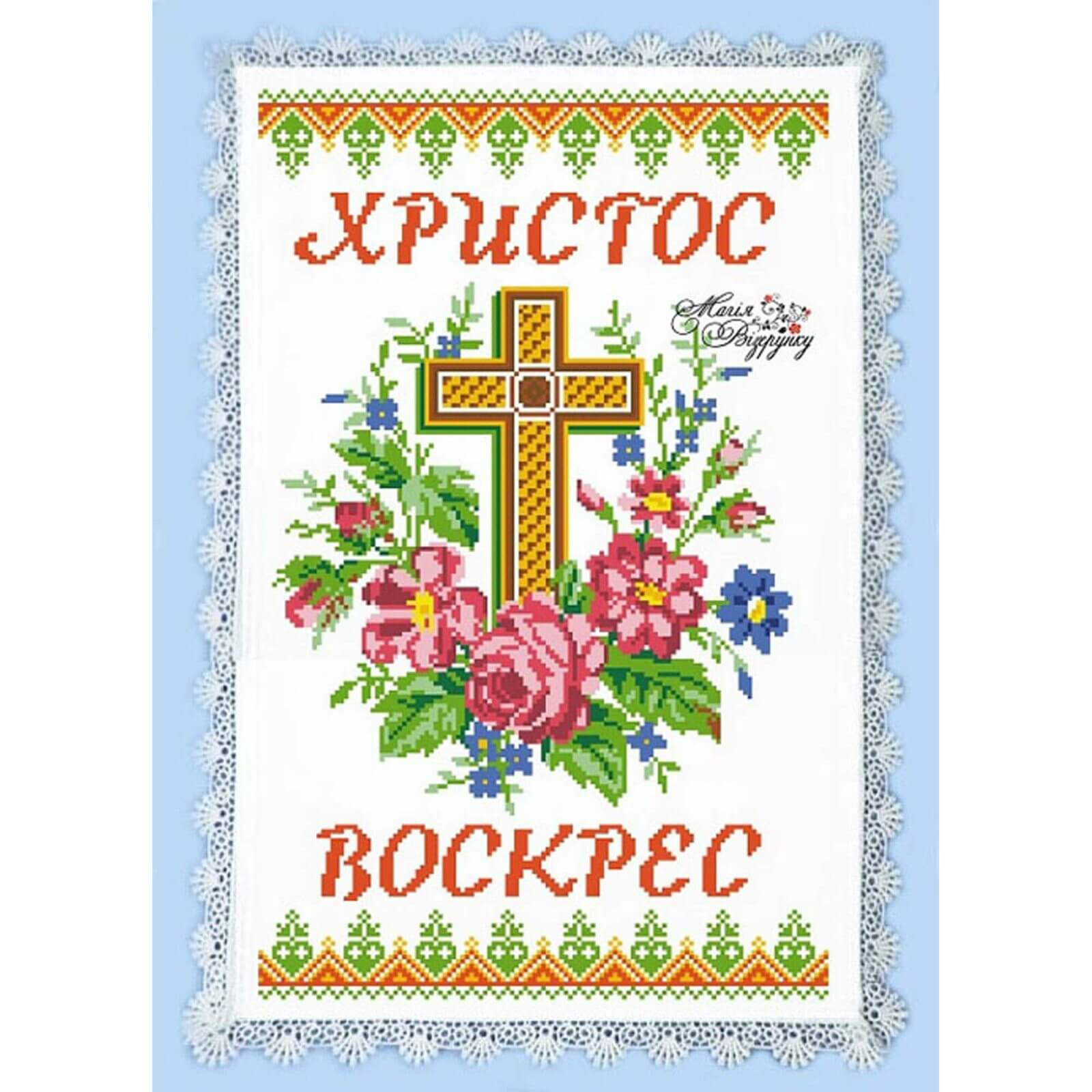 Набір містить заготовку на пасхальний рушник РП-030 для вишивки бісером або нитками з нанесеним малюнком-схемою та інструкцію до вишивання від виробника “Магія Візерунку”. В інструкції до вишивання вказані кольори та кількість бісеру фірми Preciosa.