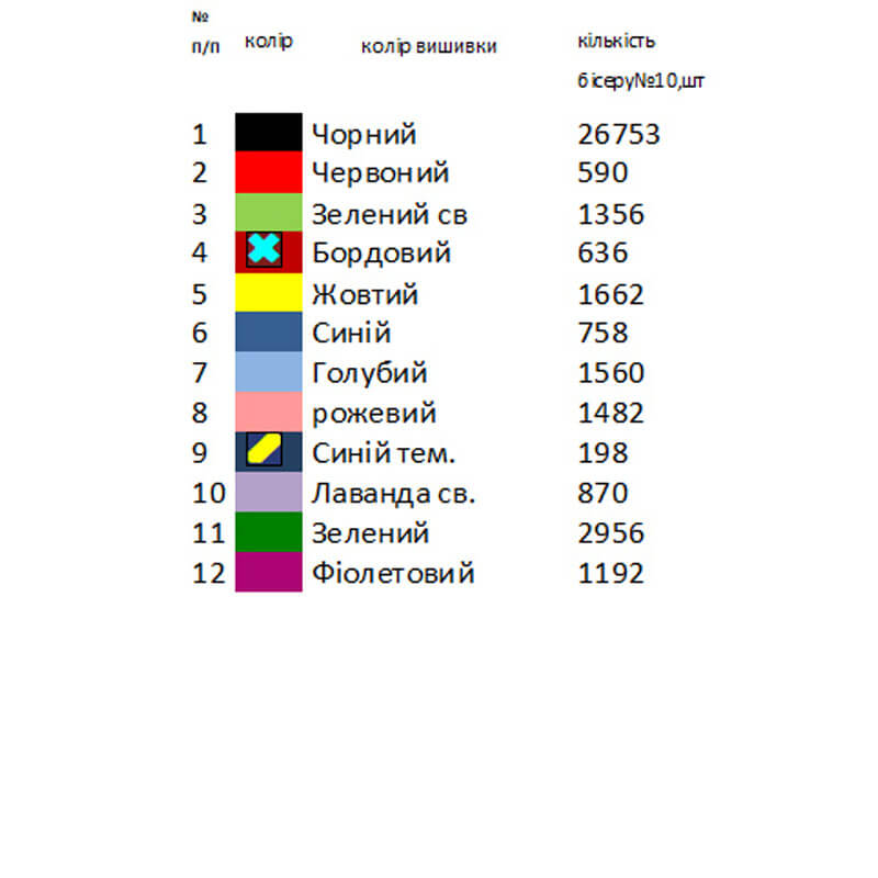 При бажанні комплектуємо чеським бісером з 15% запасом, а також ниткою для бісеру та голкою.