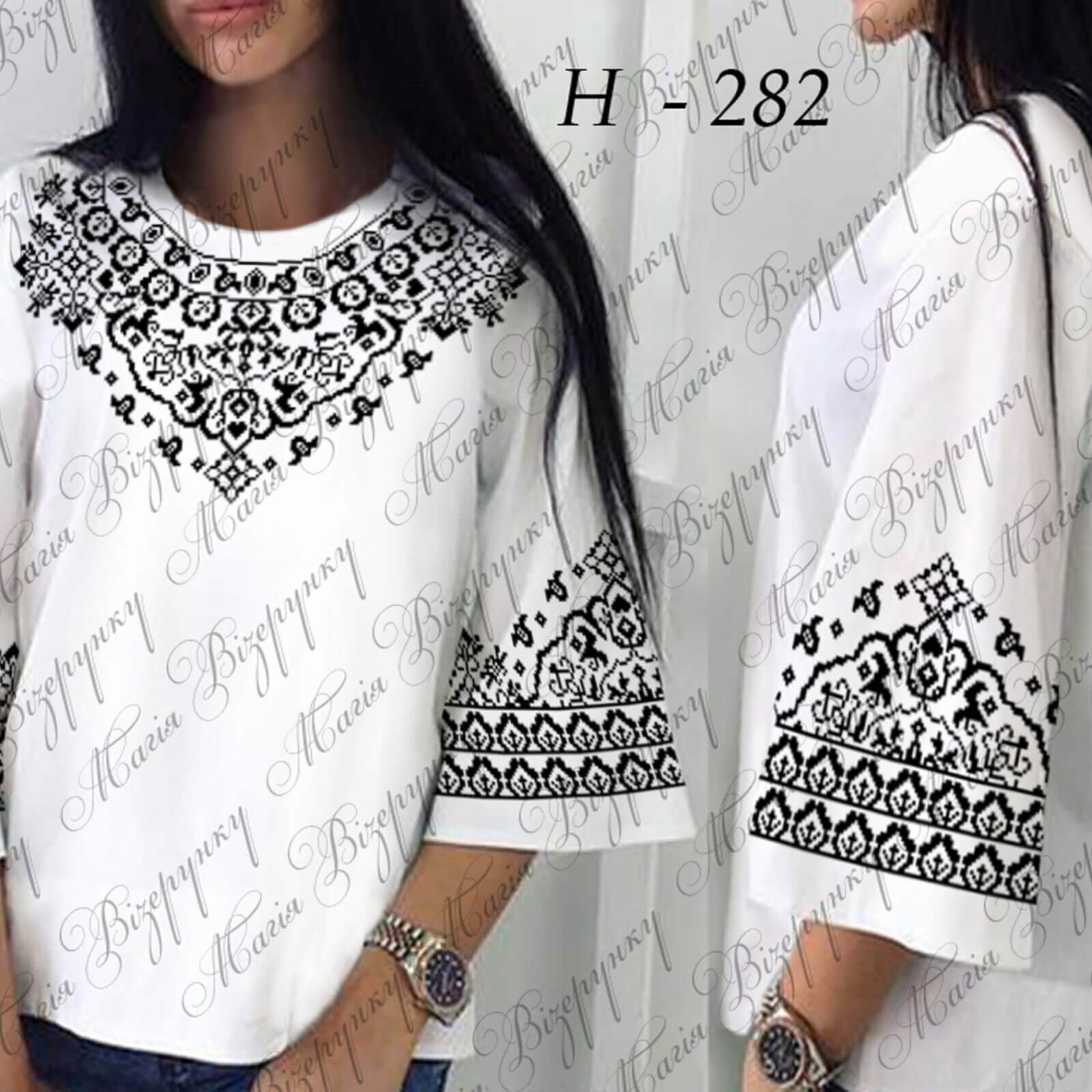 Жіноча сорочка для вишивки бісером, нитками або в змішаній техніці з нанесеною повноколірною схемою на тканині. Заготовка складається з двох полотен 75*75 см на передню частину і на спинку (без вишивки) та двох полотен 75*65 см на рукави. В комплект входить інструкція в якій вказано кольори бісеру і його кількість, рекомендовані номери ниток DMC. Дану заготовку ви можете скроїти за своїми розмірами та фасоном.