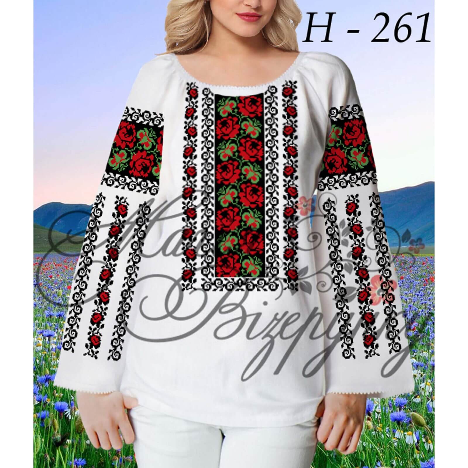 Жіноча сорочка для вишивки бісером, нитками або в змішаній техніці з нанесеною повноколірною схемою на тканині. Заготовка складається з двох полотен 75*75 см на передню частину і на спинку (без вишивки) та двох полотен 75*65 см на рукави. В комплект входить інструкція в якій вказано кольори бісеру і його кількість, рекомендовані номери ниток DMC. Дану заготовку ви можете скроїти за своїми розмірами та фасоном.