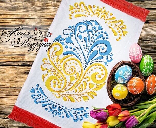Набір містить заготовку на пасхальний рушник РП-35 для вишивки бісером або нитками з нанесеним малюнком-схемою та інструкцію до вишивання від виробника “Магія Візерунку”. В інструкції до вишивання вказані кольори та кількість бісеру фірми Preciosa.