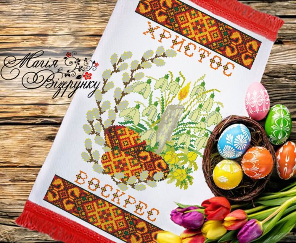 Набір містить заготовку на пасхальний рушник РП-37 для вишивки бісером або нитками з нанесеним малюнком-схемою та інструкцію до вишивання від виробника “Магія Візерунку”. В інструкції до вишивання вказані кольори та кількість бісеру фірми Preciosa.