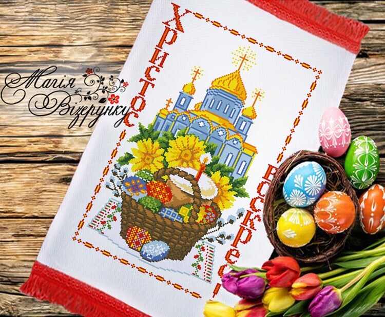 Набір містить заготовку на пасхальний рушник РП-40 для вишивки бісером або нитками з нанесеним малюнком-схемою та інструкцію до вишивання від виробника “Магія Візерунку”. В інструкції до вишивання вказані кольори та кількість бісеру фірми Preciosa.