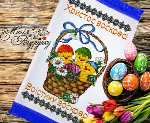 Набір містить заготовку на пасхальний рушник РП-45 для вишивки бісером або нитками з нанесеним малюнком-схемою та інструкцію до вишивання від виробника “Магія Візерунку”. В інструкції до вишивання вказані кольори та кількість бісеру фірми Preciosa.