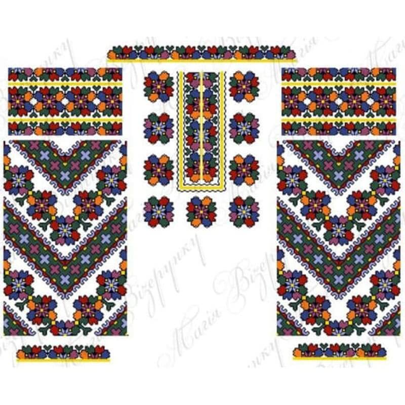 Жіноча сорочка СТд-3 для вишивки бісером, нитками або в змішаній техніці з нанесеною повноколірною схемою на тканині. Заготовка складається з двох полотен 75*75 см на передню частину і на спинку (без вишивки) та двох полотен 75*65 см на рукави. В комплект входить інструкція в якій вказано кольори бісеру і його кількість, рекомендовані номери ниток DMC. Дану заготовку ви можете скроїти за своїми розмірами та фасоном. Можливі тканини: • домоткана біла (40% бавовна 60% поліестер) • габардин білий (100% поліестер, не мнеться, добре носитися, добре пропускає повітря, гірше пропускає вологу) При бажанні комплектуємо чеським бісером з 15% запасом, а також ниткою для бісеру та голкою