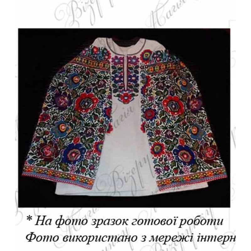 Жіноча сорочка СТд-7 для вишивки бісером, нитками або в змішаній техніці з нанесеною повноколірною схемою на тканині. Заготовка складається з двох полотен 75*75 см на передню частину і на спинку (без вишивки) та двох полотен 75*65 см на рукави. В комплект входить інструкція в якій вказано кольори бісеру і його кількість, рекомендовані номери ниток DMC. Дану заготовку ви можете скроїти за своїми розмірами та фасоном. Можливі тканини: • домоткана біла (40% бавовна 60% поліестер) • габардин білий (100% поліестер, не мнеться, добре носитися, добре пропускає повітря, гірше пропускає вологу) При бажанні комплектуємо чеським бісером з 15% запасом, а також ниткою для бісеру та голкою