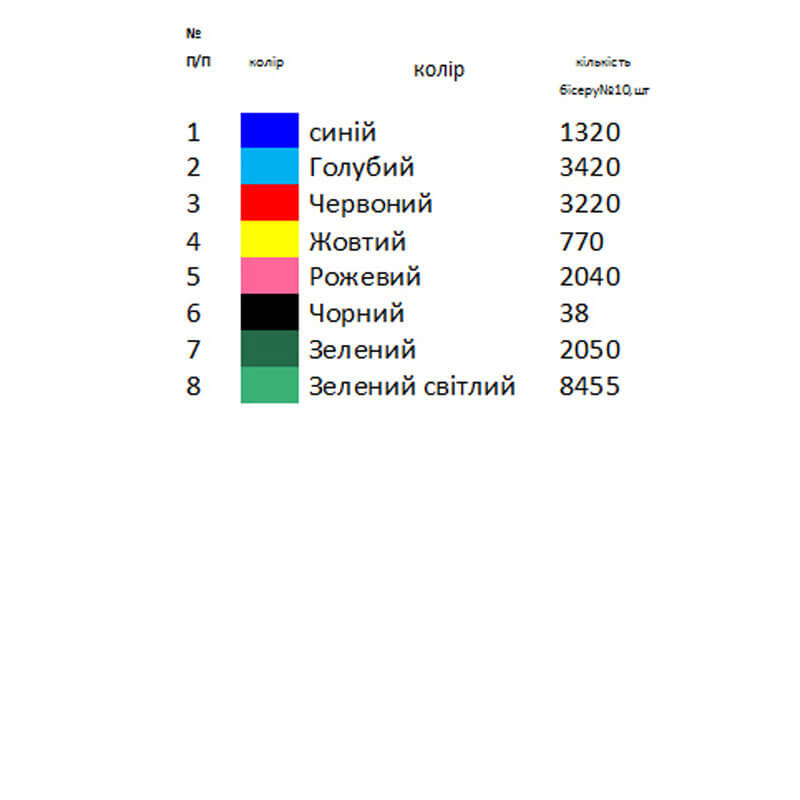 При бажанні комплектуємо чеським бісером з 15% запасом, а також ниткою для бісеру та голкою.