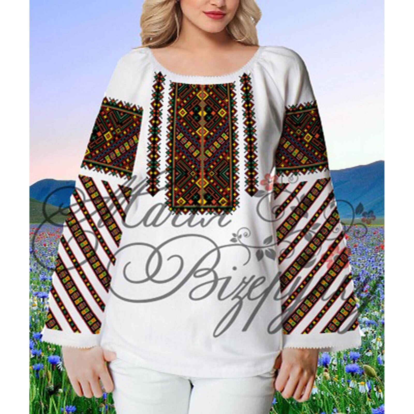 Заготовка складається з двох полотен 75*75 см на передню частину і на спинку (без вишивки) та двох полотен 75*65 см на рукави. В комплект входить інструкція в якій вказано кольори бісеру і його кількість, рекомендовані номери ниток DMC. Дану заготовку ви можете скроїти за своїми розмірами та фасоном.