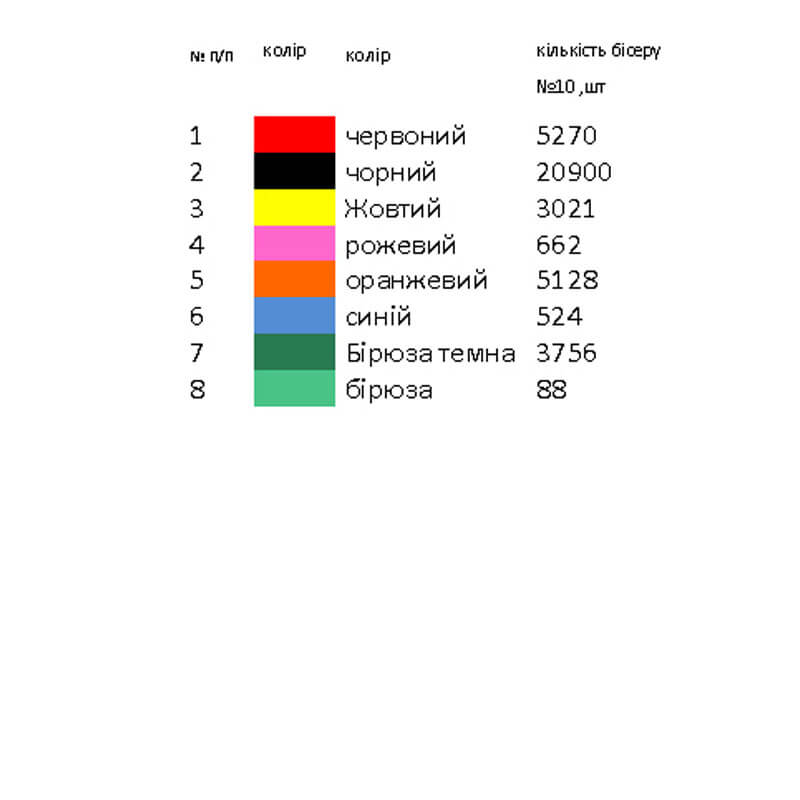 При бажанні комплектуємо чеським бісером з 15% запасом, а також ниткою для бісеру та голкою.