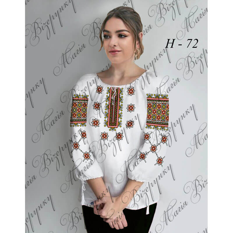 Заготовка складається з двох полотен 75*75 см на передню частину і на спинку (без вишивки) та двох полотен 75*65 см на рукави. В комплект входить інструкція в якій вказано кольори бісеру і його кількість, рекомендовані номери ниток DMC. Дану заготовку ви можете скроїти за своїми розмірами та фасоном.
