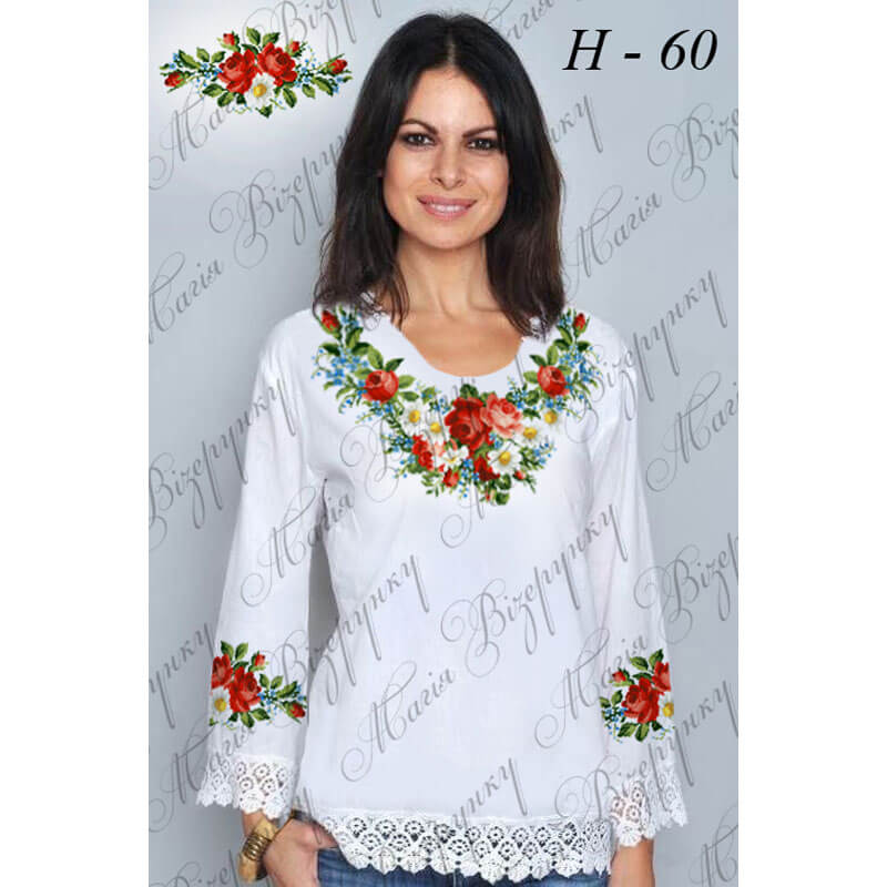 Заготовка складається з двох полотен 75*75 см на передню частину і на спинку (без вишивки) та двох полотен 75*65 см на рукави. В комплект входить інструкція в якій вказано кольори бісеру і його кількість, рекомендовані номери ниток DMC. Дану заготовку ви можете скроїти за своїми розмірами та фасоном.