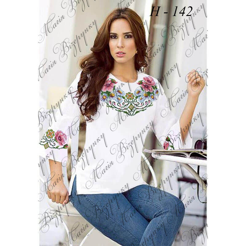 Заготовка складається з двох полотен 75*75 см на передню частину і на спинку (без вишивки) та двох полотен 75*65 см на рукави. В комплект входить інструкція в якій вказано кольори бісеру і його кількість, рекомендовані номери ниток DMC. Дану заготовку ви можете скроїти за своїми розмірами та фасоном.