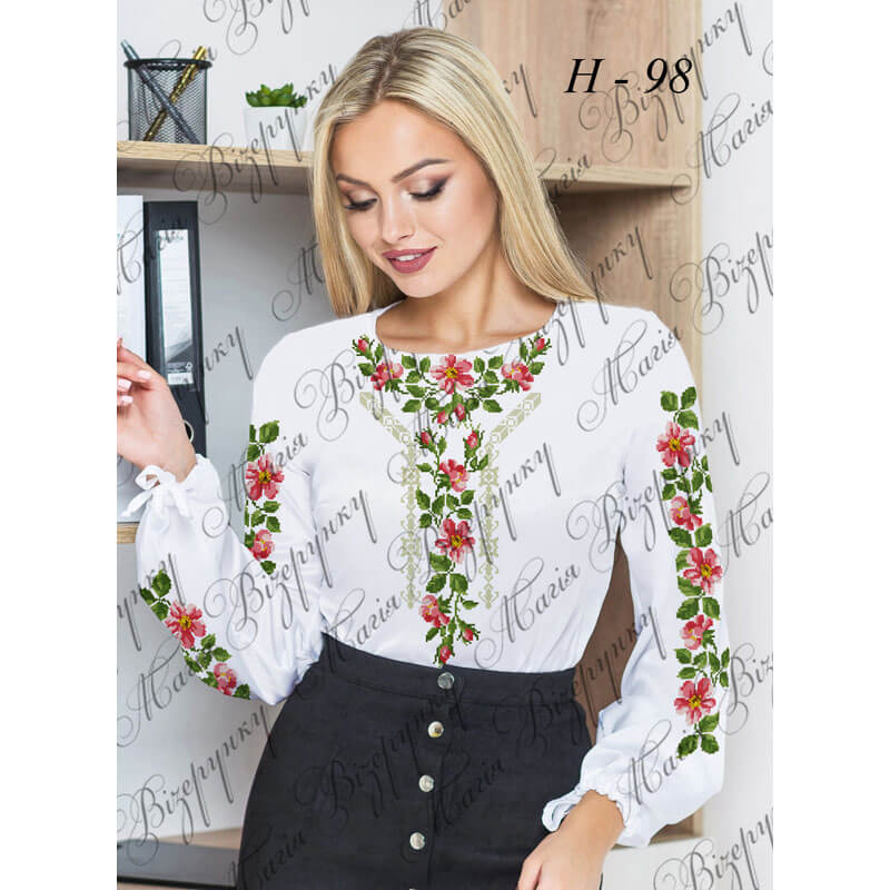 Заготовка складається з двох полотен 75*75см на передню частину і на спинку (без вишивки) та двох полотен 75*65 см на рукави. В комплект входить інструкція в якій вказано кольори бісеру і його кількість, рекомендовані номери ниток DMC. Дану заготовку ви можете скроїти за своїми розмірами та фасоном.