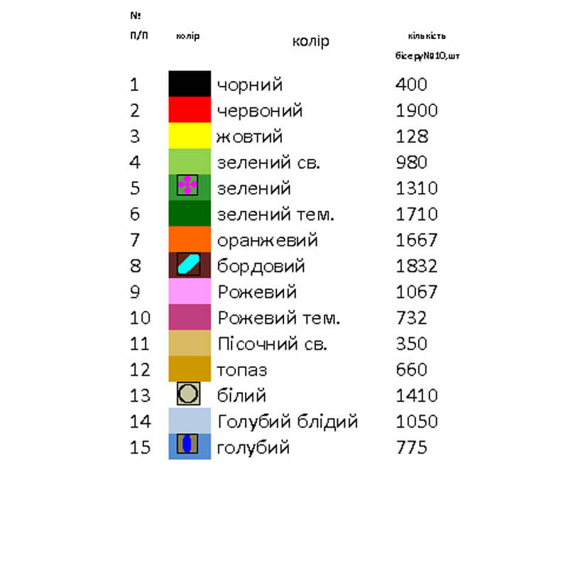 При бажанні комплектуємо чеським бісером з 15% запасом, а також ниткою для бісеру та голкою.