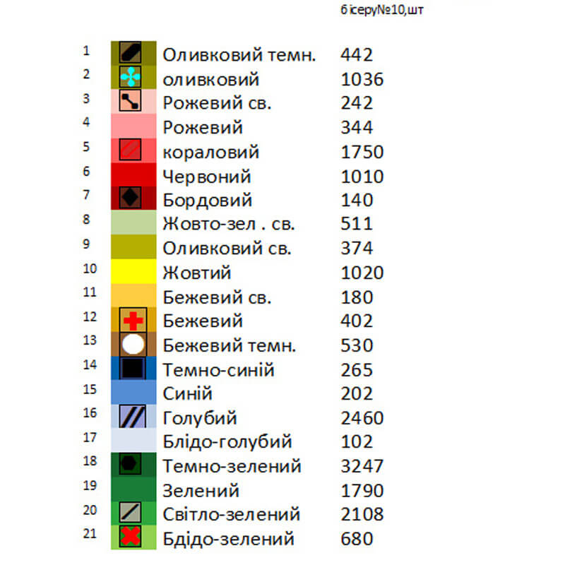 При бажанні комплектуємо чеським бісером з 15% запасом, а також ниткою для бісеру та голкою.